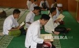 Warga binaan Lembaga Permasyarakatan Anak Pria mengikuti Kajian Ramadhan di LP Anak Pria, Kota Tangerang, Banten, Senin (12/6). (FOTO : Republika/ Yasin Habibi)