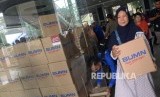 REPUBLIKA.CO.ID, JAKARTA -- Warga menerima bingkisan Ramadan berupa sembako dari PT Pertamina di Masjid Al-Mukaromah, Jakarta Utara, Selasa (13/6).