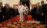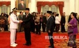 Djarot Saiful Hidayat bersama istri berfoto usai mengikuti pengambilan sumpah pada acara plantikan Gubernur DKI Jakarta oleh Presiden Joko Widodo di Istana Negara, Jakarta, Kamis (15/6). (FOTO : Republika/ Wihdan Hidayat)