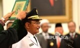 Djarot Saiful Hidayat mengikuti pengambilan sumpah pada acara plantikan Gubernur DKI Jakarta oleh Presiden Joko Widodo di Istana Negara, Jakarta, Kamis (15/6). (FOTO : Republika/ Wihdan Hidayat)