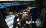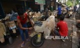Pekerja merapikan kendaraan bermotor yang akan di kirim ke daerah di salah satu jasa pengiriman di Kawasan Pasar Senen, Kamis (15/6) (FOTO : Republika/Raisan Al Farisi)