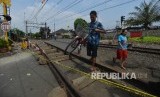 REPUBLIKA.CO.ID, JAKARTA -- Warga menyeberangi pintu perlintasan Tanah Tinggi yang telah di tutup secara permanen di Jakarta Pusat, (15/6).