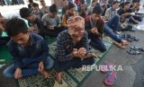 REPUBLIKA.CO.ID, JAKARTA -- Bus yang membawa pemudik tujuan Banyuwangi berangkat dari Gedung Nahdlatul Ulama (NU) saat pelepasan mudik bersama NU dan Mandiri di Jakarta, Ahad (18/6).