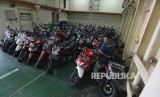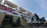 REPUBLIKA.CO.ID, JAKARTA -- Petugas membawa kendaraan bermotor untuk memasuki KM Dobonsolo saat mudik gratis di Pelabuhan Tanjung Priok, Jakarta Utara, Senin (19/6).