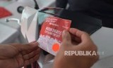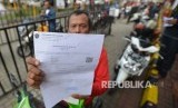 Seorang calon menunjukan surat registrasi sebelum memasuki KM Dobonsolo saat mudik gratis di Pelabuhan Tanjung Priok, Jakarta Utara, Senin (19/6) (FOTO : Republika/Raisan Al Farisi)