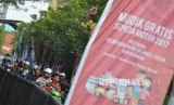Ratusan calon pemudik antre sebelum memasuki KM Dobonsolo saat mudik gratis di Pelabuhan Tanjung Priok, Jakarta Utara, Senin (19/6). (FOTO : Republika/Raisan Al Farisi)