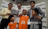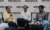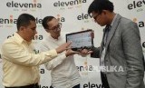REPUBLIKA.CO.ID, JAKARTA -- Senior Brand Manager elevenia Rezki Yanuar Betsama Retail Department Head Bantuan Zakat Amil Nasional (BAZNAS) Fitriansyah Agus Setiawan dan Chief Marketing Officer Rumah Zakat Irvan Nugraha memperkenalkan zakat online, Jakarta, Senin (19/6).