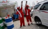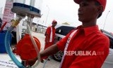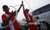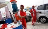 REPUBLIKA.CO.ID, BREBES -- Petugas mengisi BBM kendaraan pemudik di rest area tol fungsional Brebes - Gringsing, Jateng, Rabu (21/6).