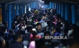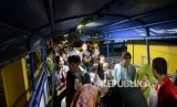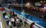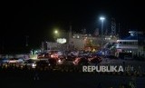 Pemudik antre memasuki kapal Ro-Ro di Dermaga 5 Pelabuhan Merak, Banten, Kamis (22/6) malam. (FOTO : Republika/Wihdan Hidayat)