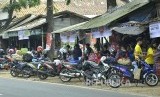 Kendaraan roda dua pemudik terparkir di warung-warung Jalan Raya Kadipaten- Pamoyanan, Kecamatan Gentong, Kabupaten Tasikmalaya, Jumat (23/6). (FOTO : Mahmud Muhyidin)