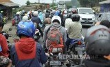 REPUBLIKA.CO.ID, TASIKMALAYA -- Antrean kendaraan roda dua melintasi ruas Jalan Raya Kadipaten- Pamoyanan, Kecamatan Gentong, Kabupaten Tasikmalaya, Jumat (23/6).