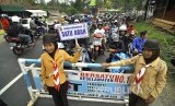 Anggota pramuka mengatur lalu lintas arus mudik saat penerapan one way di Jalan Sasak Beusi, Kecamatan Limbangan, Kabupaten Garut, Jumat (23/6). (FOTO : Mahmud Muhyidin)