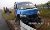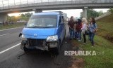 REPUBLIKA.CO.ID, Sebuah mobil bernopol B 1584 UOG mengalami kecelakaan tunggal di 120 km Tol Cipali (Cikampek-Palimanan), Jabar, Sabtu (24/6).