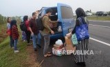 Mobil yang mengangkut 11 orang penumpang yang akan mudik ke Brebes tersebut mengalami pecah ban kemudian mobil oleng menabrak pembatas jalan. Tidak ada korban dalam kejadian tersebut.