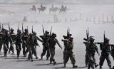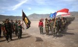 Sejumlah siswa peserta Lintas Medan Latihan Praktek (Lattek) Pendidikan Komando (Dikko) Siswa Pendidikan Pertama Bintara (Dikmaba) XXXVI TA 2016 melintasi laut pasir Gunung Bromo, Probolinggo, Jawa Timur, Sabtu (24/6). (FOTO : Antara/M Risyal Hidayat)
