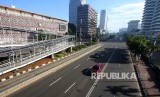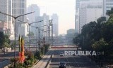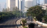 REPUBLIKA.CO.ID, JAKARTA -- Suasana lalu lintas yang lengang di ruas jalan MH Thamrin, Jakarta, Ahad (25/6). Hari pertama Idul Fitri sejumlah ruas jalan di Ibu Kota tampak lengang.