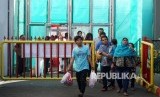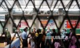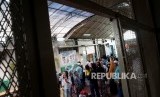 REPUBLIKA.CO.ID, JAKARTA -- Sejumlah pengunjung berjalan menuju tempat regristrasi untuk memasuki Rutan Kelas 1 Cipinang, Jakarta, Ahad (25/6).