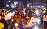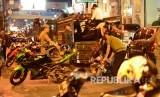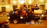 REPUBLIKA.CO.ID,BANDUNG -- Malam menjelang Idul Fitri atau malam takbiran dirayakan oleh masyarakat termasuk di Kota Bandung, kepadatan masyarakat pun cukup terasa di kawasan Alun-alun. Beberapa kendaraan terbuka membawa penumpang sambil membunyikan beduk dan melantunkan Takbir pada malam takbiran, Jumat (24/6).