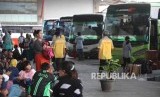 Calon penumpang menunggu keberangkatan bus di Terminal Pulogebang, Jakarta Timur, Selasa (27/6). (FOTO : Republika/Rakhmawaty La'lang)