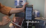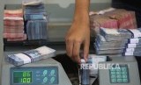 Petugas menghitung uang nasabah menggunakan mesin di cabang Bank Mandiri Pertamina UPMS III, Jakarta, Rabu (28/6). (FOTO : Republika/Rakhmawaty La'lang)