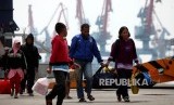 REPUBLIKA.CO.ID, JAKARTA -- Penumpang turun dari kapal Mutiara Sentosa II Panjang yang bersandar di Pelabuhan Tanjung Priok, Jakarta Utara, Jumat (30/6). Puncak arus balik transportasi laut ke Kota Jakarta diprediksi akan berlangsung pada Sabtu (1/7).