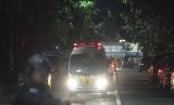 Mobil ambulans meninggalkan lokasi kejadian penikaman anggota polisi di Lapangan Bhayangkara Mabes Polri, Jakarta Selatan, Jumat (30/6). (FOTO : Antara/Sigid Kurniawan)