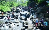 Pengunjung bermain di hulu Sungai Cireong, Kecamatan Sindangkasih, Kabupaten Ciamis, Jumat (30/6). Keindahan dan keasrian alam menjadi tujuan bermain atau berwisata yang paling diminati saat musim lebaran. (FOTO : Republika/Edi Yusuf)