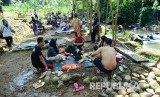 Pengunjung makan bersama di pinggiran sungai Sungai Cireong, Kecamatan Sindangkasih, Kabupaten Ciamis, Jumat (30/6). Keindahan dan keasrian alam menjadi tujuan bermain atau berwisata yang paling diminati saat musim lebaran. (FOTO : Republika/Edi Yusuf)