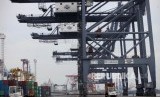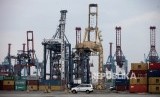 Suasana sepi kegiatan bongkar muat peti kemas di Jakarta International Container Terminal (JICT), Tanjung Priok, Jakarta, Jumat (30/6). (FOTO : Republika/Rakhmawaty La'lang)