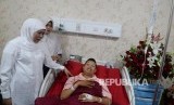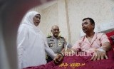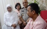 Menteri Sosial Khofifah Indar Parawanasa menjenguk dua anggota Brimob korban penusukan, dan satu anggota polisi korban bom Kampung Melayu yang dirawat di RS Polri, Jakarta, Senin (3/7). (FOTO : Republika/ Yasin Habibi)