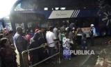 REPUBLIKA.CO.ID, JAKARTA -- Warga mengantre untuk menaiki bus tingkat wisata di Halte Masjid Istiqlal, Jakarta Pusat, Selasa (4/7).