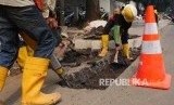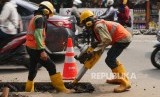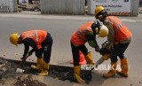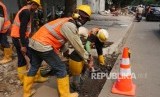 REPUBLIKA.CO.ID, JAKARTA -- Sejumlah pekerja sedang menggali pinggiran ruas jalan Barito I Jakarta, Rabu (5/7). Aktifitas ini merupakan rangkaian dari penataan pedestrian di wilayah DKI Jakarta.