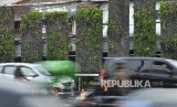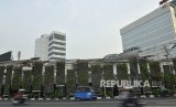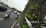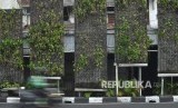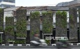 REPUBLIKA.CO.ID, JAKARTA -- Kendaran roda dua melintas di depan taman vertikal di kawasan Tugu Tani, Menteng, Jakarta Pusat, Kamis (6/7).