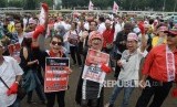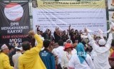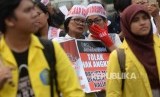 REPUBLIKA.CO.ID, JAKARTA -- BEM UI dan Iluni menggelar aksi bersama di depan Gedung DPR RI, Jakarta, Jumat (7/7).