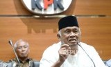 Mantan Pimpinan KPK Taufiequrachman Ruki memberi keterangan pers di gedung KPK, Jakarta, Jumat (7/7). (FOTO : Republika/ Wihdan Hidayat)