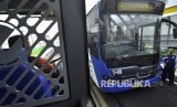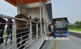 REPUBLIKA.CO.ID, JAKARTA -- Sejumlah bus Transjakarta melintas saat survei di koridor 13 Tendean, Jakarta Selatan, Ahad (9/7).