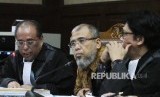 REPUBLIKA.CO.ID, JAKARTA -- Mantan hakim Konstitusi Patrialis Akbar didampingi tim penasehat hukumnya mendengarkan keterangan saksi pada sidang lanjutan di Pengadilan Tipikor, Senin (10/7).