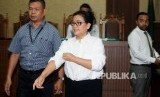 Mantan anggota DPR Miryam S. Haryani bersiap menjalani sidang perdana kasus dugaan pemberian keterangan palsu di Pengadilan Tripikor, Jakarta, Kamis (13/7). (FOTO : Republika/Prayogi)