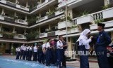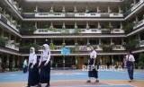 Sejumlah siswa dan siswa SMP Negeri 273 Jakarta nampak berjalan di halaman sekolahnya, Selasa (18/7). (FOTO : Republika/Darmawan)