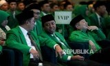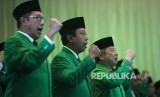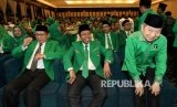 Ketua Umum PPP M Romahurmuziy (tengah),bersama Ketua Majelis Pakar PPP Lukman Hakim Saifuddin (kiri), dan Ketua Majelis Pertimbangan PPP Suharso Monoarfa (kanan) saat menghadiri pembukaan Musyawarah Kerja Nasional (Mukernas) II & Bimtek Anggota DPRD di Jakarta, Rabu (19/7). (FOTO : Rakhmawaty La'lang/Republika)