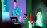 Ketua Umum PPP M Romahurmuziy menyampaikan pidato arahannya pada pembukaan Musyawarah Kerja Nasional (Mukernas) II & Bimtek Anggota DPRD PPP di Jakarta, Rabu (19/7). (FOTO : Rakhmawaty La'lang/Republika)