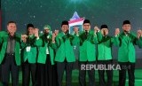 Ketua Umum PPP M Romahurmuziy (tengah), berfoto bersama Pengurus Pusat dan sejumlah jajaran Pengurus Pusat serta tokoh senior PPP pada pembukaan Musyawarah Kerja Nasional (Mukernas) II PPP di Jakarta, Rabu (19/7). (FOTO : Rakhmawaty La'lang/Republika)
