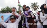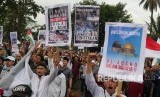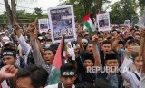 Terkait tragedi penutupan Masjidil Aqsha oleh Zionis Israil, ribuan massa yang tergabung dalam Aliansi Masyarakat Selamatkan Al Aqsha (AMSA) menggelar aksi di depan Gedung Sate, Kota Bandung, Kamis (21/7). (FOTO : Republika/Edi Yusuf)