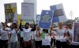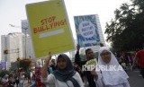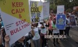 REPUBLIKA.CO.ID, JAKARTA -- Sejumlah warga dari komunitas Sudah Dong melakukan aksi "Stop Bullying" saat Hari Bebas Kendaraan Bermotor (HBKB) di Kawasan Bundaran HI, Jakarta, Ahad (23/7). Aksi tersebut dilakukan untuk mengajak masyarakat mengentikan aksi "bullying" yang kerap terjadi di sekolah dan di dunia maya.