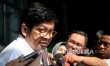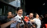 Mantan Menteri Badan Usaha Milik Negara (BUMN) Laksamana Sukardi menjawab pertanyaan seusai menjalani pemeriksaan di gedung KPK, Jakarta, Rabu (26/7). (FOTO : Republika/Prayogi)