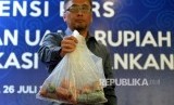 REPUBLIKA.CO.ID, JAKARTA -- Petugas Bank Indonesia menunjukan lembaran uang Rupiah palsu yang telah dimusnahkan di Gedung C Bank Indonesia, Jakarta, Rabu (26/7).