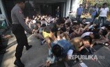 Sejumlah pelaku //cyber fraud// (penipuan melalui media daring) asal Cina diamankan petugas di kawasan Pondok Indah, Jakarta, Minggu (30/7). Petugas Satuan Khusus Mabes Polri bersama Kepolisian Cina berhasil mengamankan sebanyak 29 pelaku tindak kejahatan penipuan melalui daring dengan barang bukti berupa telepon, jaringan internet dan laptop. (FOTO : Muhammad Adimaja/Antara)