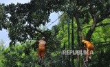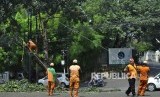 REPUBLIKA.CO.ID, JAKARTA -- Pasuka oranye menarik pohon yang sudah dipangkas di kawasan Jalan Pejaten, Jakarta, Senin (30/7).