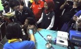 Menteri Kesehatan Nila F Moeloek menyaksikan seorang siswa diberikan suntikan imunisasi Measleas Rubela (MR) pada acara Kampanye Measles Rubella (MR) dan Campak sekaligus Peringati Asean Dengeu Day 2017 di SMPN 103 Cijantung, Jakarta, Rabu (2/7). (FOTO : Republika/Mahmud Muhyidin)