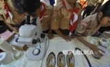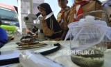 Seorang siswa melihat jentik nyamuk menggunakan mikroskop disalah satu stan pameran saat acara Kampanye Measles Rubella (MR) dan Campak sekaligus Peringati Asean Dengeu Day 2017 di SMPN 103 Cijantung, Jakarta, Rabu (2/7). (FOTO : Republika/Mahmud Muhyidin)